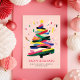 Moderna pintura de árbol de Navidad colorida tarjeta de vacaciones no fotográfica