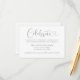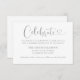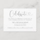 La moderna tarjeta de la recepción de bodas en blanco y gris plateado (se pueden modificar los colores) presenta un diseño tipográfico elegante con un guión de caligrafía de moda y un acento cardíaco. El sencillo y elegante texto personalizado que puede ser personalizado para invitar a los huéspedes a "Celebrar" el boda, incluyendo el nombre de la recepción, la dirección y la hora de llegada.