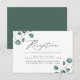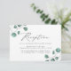 Elegantes tarjetas de recepción de bodas eucaliptos con eucalipto pintado a mano, polvorientos eucaliptos verdes y follaje en las esquinas. Personalice las tarjetas de recepción de bodas añadiendo los detalles de la recepción. Diseñado para coordinar con nuestra colección de bodas Eucalyptus Greenery Modern.