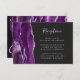 El borde izquierdo de esta elegante y moderna tarjeta del recinto de la recepción nupcial cuenta con un borde de agujeros color morado recortado con un falso purpurina plateado. El título aparece en el guión de escritura a mano, con el texto de personalizable debajo en el tipo de letra de copperplate gris plateado en un fondo no negro. El reverso presenta un diseño de agate morado y plateado a juego.