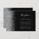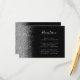 El borde izquierdo de esta elegante y moderna tarjeta de la recepción de bodas incluye un diseño de purpurina falso plateado. El texto del personalizable combina la escritura a mano gris plateado, la copperplate y las fuentes cursivas en un fondo negro. El reverso presenta un diseño purpurina negro y plateado a juego.