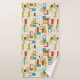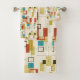 Fun Mid Century Patrón moderno para su baño de estilo retro. fondo de marfil bonito con negro, naranja y turquesa, geométrico, cuadrado y rectángulos.