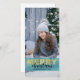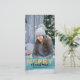 Una tarjeta de vacaciones moderna para Navidades con un borde azul de hielo y una sobreimpresión de texto de escritura tipográfica de color dorado-negro. Cambiar fácilmente la foto vertical de muestra con la suya propia.