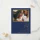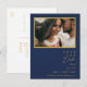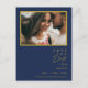 Esta moderna tarjeta de guardar la fecha de boda con foto postcard minimalista azul marino y dorado es perfecta para tu boda boho chic. Su diseño abstracto simple y único acompañado de una tipografía minimalista contemporánea y una paleta de colores azul marino oscuro le da a este producto un toque de lujo formal elegante mientras mantiene un estilo bohemio chic simplista. ¡Mantén tal como está o personalízala con arte o gráficos de tu elección!