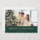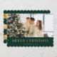 Foto moderna de Relieve metalizado verde y dorado. Tarjeta navideña con franjas verdes y falsas de Relieve metalizado dorado con caída de nieve en la parte de atrás y una foto en el frente. Personalice fácilmente esta elegante tarjeta de vacaciones con su foto y texto.