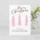 Celebra la temporada navideña con estilo con esta moderna tarjeta de vacaciones rosa. Con un árbol rosa de color moda acentuado por detalles festivos, este diseño contemporáneo es perfecto para enviar cálidos deseos a amigos y familiares. Un giro único en la tarjeta de vacaciones clásica, combina elegancia y encanto moderno, convirtiéndolo en un recuerdo memorable para la temporada.