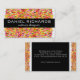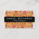 Diseño moderno y moderno, colorido de tarjetas de visita con estripas abstractas, amarillas, naranjas y rojas. Fácil de personalizar con tu nombre, información de contacto y detalles de la empresa. Guay y diversión, pero elegante, perfecto para el negocio del diseño interior, planificador de eventos, planificador fiesta, decorador, maquillador, diseñador de muebles o estilista. Puede hacer clic en el botón Personalizar para cambiar fuentes y colores o agregar su logotipo u otras imágenes. Colección de productos de marca coincidentes: com