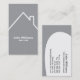 Una tarjeta de visita moderna y contemporánea con un diseño elegante y limpio que presenta el contorno de un techo en una casa, blanco sobre fondo gris. Personalizable de áreas de texto para nombre, título y nombre comercial y otra información de contacto en la parte posterior. Para solicitudes de personalizado o ayuda para personalizar, por favor, utilice el enlace de contacto de tienda anterior. Diseño moderno y simple pero elegante para agentes inmobiliarios, inmobiliarios, constructores y más.
