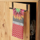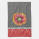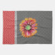 Esta acuarela de mi naranja y rosa flor de la manta india es impresionante contra el fondo gris punteado. El diseño del borde rojo y salmón es, oh, tan moderno y fresco. Puedo ver esto en una cocina de acero inoxidable.