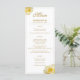 Carta de boda floral de rosa amarillo moderno // Esta plantilla de boda floral moderna y elegante tiene bonitas rosas amarillas y un elegante borde. El fondo es blanco. El texto está en un guión moderno de color dorado. Puede personalizar fácilmente todo el texto - personalizarlo con el nombre de la novia y del novio, la fecha del boda y el menú del boda. / Este menú boda va con otros elementos de la colección de Bodas azules de la medianoche de la rosa amarilla.