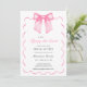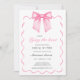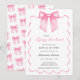 Amarrando la Invitación a la ducha de novias Knot Pink Bow con un arco acuarela en el centro enmarcado por una cinta de vieiras. Hermoso y elegante guión con la frase "Ella está atando el nudo" combinado con un estilo art deco y un tipo elegante para los detalles Personalice esta suave invitación a una ducha de novia rosa y elija pedir una invitación o impresiones digitales. Diseño original de Ana Garza/Kardz Studio Designs. Si tiene alguna pregunta, por favor contacte conmigo a través de la charla de Zazzle.
