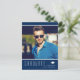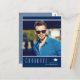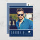 Elegantes postales de invitación de graduación con marcos en azul y blanco, con texto moderno con un aspecto elegante y profesional. La foto de los graduados en la parte delantera de la tarjeta se ve realzada por marcos delgados y translúcidos en la parte superior e inferior, mientras que la parte posterior de la tarjeta ofrece espacios de texto personalizados para obtener información sobre la graduación y el viaje futuro. Para ver más artículos como este, visita mi tienda aquí en "www.Zazzle.com/LakeViewCardCo". ¡Gracias