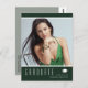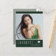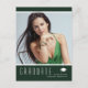 Elegantes postales de invitación de graduación con marcos verdes y blancos, con texto moderno con un aspecto elegante y profesional. La foto de los graduados en la parte delantera de la tarjeta se ve realzada por marcos delgados y translúcidos en la parte superior e inferior, mientras que la parte posterior de la tarjeta ofrece espacios de texto personalizados para obtener información sobre la graduación y el viaje futuro. Para ver más artículos como este, visita mi tienda aquí en "www.Zazzle.com/LakeViewCardCo". ¡Gracias