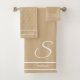 Moderno y elegante Tan Sand Beige n Monograma blanco inicial y nombre familiar Baño Toalla set, diseño de Sandy Closs