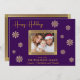 Comparte la alegría de los Navidades con esta impresionante tarjeta fotográfica familiar. El fondo morado profundo está bellamente acentuado con intrincados copos de nieve dorados, creando un diseño festivo y sofisticado. Tu preciada foto familiar ocupa el centro del escenario, enmarcada por un brillante borde dorado, creando un punto focal que irradia calidez y amor. Personalice la tarjeta con el nombre de su familia y los nombres de cada miembro para que sea únicamente suya. El interior de la tarjeta contiene un sentido mensaje de vacaciones con elegantes letras doradas, extendiendo cálidos deseos para una temporada de vacaciones llena de felicidad y alegría. Esta tarjeta plana personalizable es una forma ideal de conectarse con sus seres queridos durante la época más maravillosa del año.