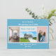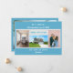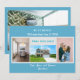 tarjeta de invitación minimalista, elegante, de moda con fotos de 3+1 personalizados, nombres de familiares y el texto "¡Nos hemos mudado! Ven a visitarnos pronto!" + la nueva dirección y número de teléfono fijo en la parte delantera para que lo personalizes. Moderno, de moda azul turquesa pálido con escritura blanca, azul y verde azulada. Tenga en cuenta que puede conservar la tarjeta tal como está, o transferirla a una postal y así mantener sólo el diseño frontal, con tres fotos de cada cuatro.