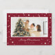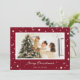 La tarjeta de Navidades de fotografía personalizado roja moderna con estrellas de fondo rojo oscuro. Personaliza fácilmente estas elegantes tarjetas de Navidades de fotos rojas con tu imagen favorita, un nombre de familia y un texto.
