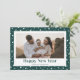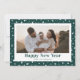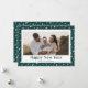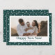 Foto verde personalizado tarjeta de Año Nuevo con un hermoso título de guión festivo y pequeñas estrellas en un fondo verde claro en el frente y en la parte posterior. El fondo se puede cambiar a cualquier color. Personalice fácilmente esta minimalista tarjeta de vacaciones con fotos verdes con su foto y nombre de familia.