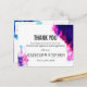 Las postales de Gracias son modernas, elegantes y artísticas manchas de color rosa, púrpura y azul real. Este diseño clásico y sofisticado es perfecto para cualquier evento elegante y de moda, incluyendo bodas y ocasiones diarias. Todas las fotos impresas.