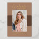 Hermosas tarjetas de invitación para graduación fotográfica. Con un texto moderno con un elegante guión caligráfico en su elección de Relieve metalizado dorado, plateado o rosa. Tus fotos están muy bordeadas en blanco para ese "Pop" extra. El diseño se complementa con un fondo de terracota clara y tonos tierra mocha. La parte posterior de la tarjeta ofrece un espacio de texto de invitación personalizado para ese graduado especial. Para ver más artículos como este, visita mi tienda aquí en "www.Zazzle.com/LakeViewCardCo". ¡Gracias