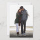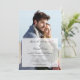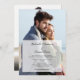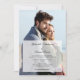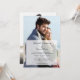 Esta simple invitación a la boda incluye 2 fotos verticales de sangre completa, una en la parte delantera y otra en la parte posterior. El texto aparece en una caja transparente blanca en la parte superior de la foto. El reverso ofrece texto personalizado para la información de RSVP.