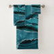 Este hermoso juego de toallas de agata azul teal y falso brillo plateado moderno y elegante es perfecto para animar su baño.