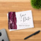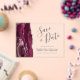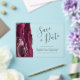 Esta elegante y moderna tarjeta de fecha guarda una aguja color rojo burdeos bordeada por un falso purpurina plateado. El texto del personalizable combina guiones de escritura a mano, copperplate y cursiva en gris carbón sobre un fondo claro.