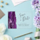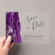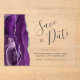Esta elegante y moderna tarjeta de fecha guarda un borde de agate color morado con un falso purpurina de plata. El texto del personalizable combina guiones de escritura a mano, copperplate y cursiva en gris carbón sobre un fondo claro.