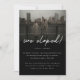 Moderno anuncio de boda de escape con foto con guion negro. Personalice esta tarjeta de boda minimalista y elegante con una foto de boda favorita, sus nombres y su mensaje de escape para amigos y familiares.