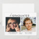 Esta moderna plantilla de tarjeta de anuncio de doble graduación le permite subir una fotografía cuadrada de Instagram de cada graduado, añadiendo su nombre, lugar de estudio y año de clase. Ya sean hermanos y hermanas, gemelos o mejores amigos, esta es la plantilla perfecta para que la gente conozca los logros de los graduados. Todo el texto es fácil de personalizar con sus propios detalles.