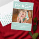 Crea tu propia tarjeta de vacaciones moderna agregando tu foto, nombre de familia y nombres en la barra lateral. El lado izquierdo de la tarjeta tiene un árbol geométrico blanco sobre un fondo verde menta. Las palabras "regocijo", "alegría" y "disfrute de la temporada" de la guirnalda del árbol de Navidad en la tipografía de escritura roja curvada. El texto del personalizado aparecerá debajo del árbol en rojo dentro de un cuadro blanco. También puede agregar el año si lo desea, o borrar todo el texto para escribir su propio mensaje. En la parte posterior se observa un patrón geométrico coordinado de árboles verdes claros de diferentes tamaños sobre un fondo blanco. Para ver el diseño del patrón de Navidades blancos de la Casa de la Moneda Moderna en otros elementos, haga clic en el enlace de la colección "Artes Rocklawn" debajo. Imagen creada digitalmente. Diseño de tarjeta, derechos reservados ©Claire E. Skinner. Todos Los Derechos Reservados. Fotografía © Storytree Studios, Stanford, CA