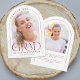 Esta sencilla invitación de graduación de arco rojo y blanco presenta un delicado marco en arco, 2 plantillas de fotos y una elegante tipografía moderna.