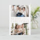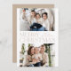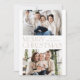 Tarjeta fotográfica navideña moderna con "Feliz Navidad" en el centro del diseño con letras beige de moda con fondo blanco. Personalice la tarjeta de Navidades simples con su nombre de familia y 2 fotos horizontales. La tarjeta se invierte para mostrar un fondo beige con puntos blancos sutiles (nieve).