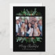 Un simple y clásico aspecto de tarjeta de Navidades con vegetación como ramas verdes, hojas y más rodean una sola foto de su equipo de negocios o personal. Los toques sutiles y los toques de color de las bayas rojas huecas le dan un poco más de extra. En el centro está 'Feliz Navidad' en una elegante tipografía de escritura, así como sus nombres de negocios. El fondo negro aporta un toque más moderno. Es divertido pero minimalista al mismo tiempo. Al dorso, agregue una pequeña nota, o puede eliminarla por completo si desea dejar en blanco o agregar su propia nota. También puede incluir el logotipo de su empresa, la dirección de la empresa y la información de contacto. Si lo prefiere, puede cambiar el mensaje principal a "Felices Fiestas" o "Saludos de temporada". Sencillo Logotipo Corporativo Moderno Foto Negra De Negocios Con Tarjeta De Festividad De Navidad. Disponible como tarjeta impresa o como tarjeta digital descargable que puede enviar por correo electrónico o imprimir localmente.
