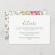 El precioso patrón de flor silvestre de primavera boda tarjeta de detalles del huésped cuenta con flores de prado románticas en un sencillo fondo blanco, y una tipografía de escritura a la moda.