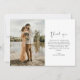 Presentamos nuestra tarjeta de agradecimiento a nuestro Boda de fotos sencillo de escritura moderna: eleva su gratitud con nuestras elegantes tarjetas de agradecimiento con escritura moderna y su foto boda favorita. Estas tarjetas ofrecen un diseño elegante y minimalista que complementa perfectamente cualquier estética boda. Personalízalos con un mensaje sincero de agradecimiento para expresar tu agradecimiento a amigos y familiares por su amor y apoyo. Diseñadas con materiales de alta calidad, estas tarjetas proporcionan una manera elegante y sofisticada de expresar su gratitud. Ya sea que esté agradeciendo a los invitados por su presencia o por sus regalos, nuestra Boda de fotografía sencilla con escritura moderna Gracias las tarjetas le agregan un toque personal a sus expresiones de agradecimiento. Con sus líneas depuradas y su encanto contemporáneo, crean una impresión duradera que refleja la belleza de su día especial. Comparte tu gratitud con estilo con nuestro Modern Script Simple Photo Boda Gracias Cartas, y deja que tu apreciación brille con cada palabra.