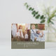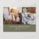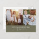 Esta tarjeta de Navidad con collage de fotos en verde moderno chic es el saludo festivo elegante perfecto. Este diseño boho simple presenta caligrafía clásica sofisticada en verde oliva rústico y blanco. Personalice su tarjeta con 2 fotos, el nombre de su familia, nombres y año. Incluya un resumen del año o boletín familiar opcional en la parte posterior.