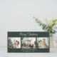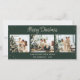 Elegante foto verde personalizado tarjetas navideñas Feliz con un collage de fotos y nieve cayendo sobre un fondo verde oscuro. Personaliza fácilmente esta tarjeta de Navidades de fotos con letras verdes a mano con tus imágenes favoritas y un nombre de familia.