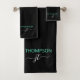 Nombre de guión simple monocromático personalizado y moderno inicial y elegante elegante estilo elegante negro y Verde azulado Añadir su nombre con las iniciales grisáceas. Esta toalla de baño personalizada es perfecta para la Sweet 16, 1st, 21st, 30th, 40th, 50th, 60th, 70th, Birthday Party, Bodas, Party Favor, Holiday Gift, Quinceanera, Graduation, Bridal Shower, Bachelorette Party, Aniversario o Baby Shower.