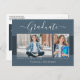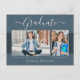 Hermosas postales de invitación para graduación fotográfica. Presenta un texto moderno con un guión elegante de caligrafía en gris claro en tonos regales de azul polvoriento. Para ver más artículos como este, visita mi tienda aquí en "www.Zazzle.com/LakeViewCardCo". ¡Gracias