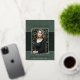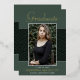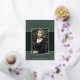 Una tarjeta de invitación exclusiva para graduación de fotos, que incluye elementos de diseño de un guión elegante de estilo manuscrito. La palabra "Graduado" y el nombre de los graduados en Relieve metalizado real (las opciones de color Relieve metalizado son oro, plata y rosa). La foto de los graduados está muy bordeada en un borde blanco y un adorno decorativo ondulado. El diseño se complementa con un fondo de tonos verde menta. La parte posterior de la tarjeta ofrece un espacio de texto de invitación personalizado para ese graduado especial. Para ver más artículos como este, visita mi tienda aquí en "www.Zazzle.com/LakeViewCardCo". ¡Gracias