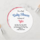 Invitación a una ducha de bebé para niños con un aro de béisbol. Invite a un niño a que vea el fondo para darle un toque especial a su fiesta.