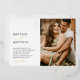 ¡Trae a tu boda soñado a la vida con invitaciones de boda fotográficas minimalistas! Estas elegantes y modernas invitaciones cuentan con un sencillo fondo blanco con una foto en el frente y en la parte posterior que se puede reemplazar fácilmente por la suya propia. Para hacerlos especiales, vienen con una plantilla de texto de Relieve metalizado real parcial con todos los detalles de su boda, haciendo que este diseño único sea verdaderamente único. ¡Asegúrate de que tu boda destaque de la multitud con estas minimalistas invitaciones fotográficas! Con su aspecto moderno y atemporal, sus huéspedes estarán encantados con el lujo sutil que cada uno de los invitados transmite. Los huéspedes quedarán impresionados por la calidad de estas hermosas bodas.