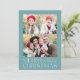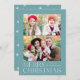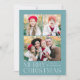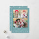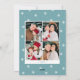 Tarjeta navideña simple y elegante con un collage de fotos en la parte delantera con "Feliz Navidad" colgado en letras blancas y modernas sobre un fondo azul congelado. Personalice la parte delantera de la tarjeta agregando sus fotos y su nombre. La tarjeta se revierte para mostrar 4 fotos adicionales y el año con un fondo de patrón de copo de nieve blanco. La tarjeta multifoto de vacaciones es perfecta para mostrar todas tus fotos familiares favoritas.