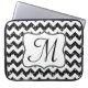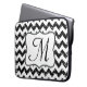 Moderno Purpurina negro Chevron Zig Zag Tapa de banda Patrón de impresión Monograma inicial Bolsa de Funda portátil de 15" Personalizada