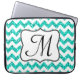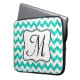Moderno Purpurina Verde azulado Chevron Zig Zag Stripe Fabric Patrón de impresión Monograma Inicial Bolsa de Funda portátil de 15" Personalizado