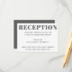 Tarjeta de gabinete boda moderna con la palabra "Recepción" en grandes letras grises en negrita en la parte superior, sobre un fondo blanco. El reverso es de un color gris a juego. El tipo de letra y los colores de fondo pueden cambiarse a los colores que desee. Estas tarjetas son una adición perfecta a tu suite si tu recepción se realiza en un lugar diferente a tu ceremonia.
