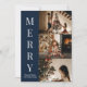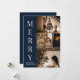 Tarjeta de festividad de fotos de navidad con escritura azul moderna. Envíe personalizable y saludos personalizados de vacaciones a amigos, colegas y familia en festividades de diseño fotográfico simple, moda, elegante y moderno, tarjetas de estilo minimalista natural! Debajo de la caligrafía se muestra el mensaje de bienvenida de su personalizado en la tipografía moderna.