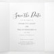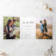 Captura la esencia de tu historia de amor con nuestro exquisito Personalizado Photo Wedding Guardar la tarjeta de fecha con elegante tipografía de escritura. Este diseño atemporal y personalizado sirve como el preludio perfecto para su día especial, permitiéndole compartir un vistazo de su alegría con sus seres queridos. De esta forma, guardar la fecha incluye un saludo horizontal de fotos y guiones que abarca todo el fondo, fuera de esta tarjeta triple.