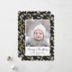 Envía saludos navideños personalizados y personalizables a amigos, colegas y familiares en tarjetas de fotos simples, minimalistas, elegantes, divertidas, festivas y modernas. Un hermoso marco de variedad de hojas de árbol de pino y muérdago dorado y blanco sobre fondo negro rodea tu foto en papel redondo con borde de concha. El saludo "Feliz Navidad" está escrito en caligrafía elegante, y debajo aparece tu mensaje de saludo personalizado con el nombre de tu familia en tipografía moderna. Al dar la vuelta, revela un hermoso fondo con patrón completo de hojas de árbol de pino y muérdago de Navidad.